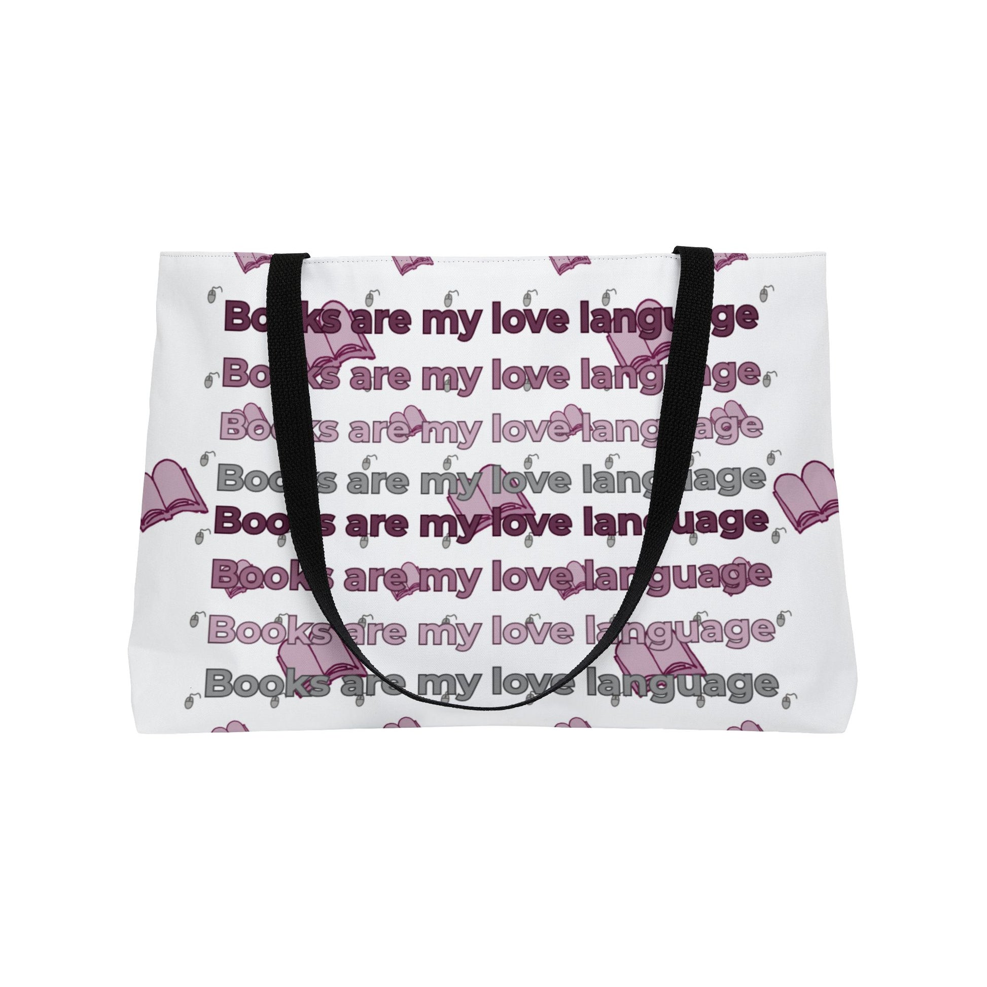 Carry your love of stories everywhere you go with this Books Are My Love Language Weekender Tote. Spacious, stylish, and designed for book lovers, this tote is the perfect mix of practicality and personality. Whether you’re heading to the bookstore, the beach, or a cozy weekend getaway, this bag holds all your essentials while showing off your reader pride.
